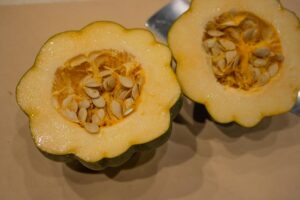Two 1 1/2-pound acorn squash, halved lengthwise and seeded (oops I cut them crosswise)