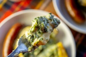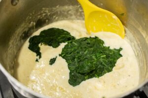 This is one way to get Manservant to eat his veggies! Best creamed spinach I’ve seen!