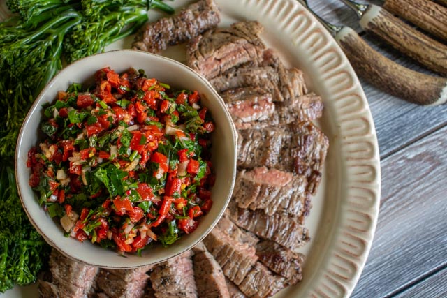 Interesting! I’ve never come across red chimichurri before, but now I’m intrigued. I do enjoy the green version, so now I want to try this one. Also, Buck, Buck, Moose! is the best title for a wild game cookbook!!
