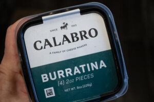 Drain the burrata, tear it, and serve it alongside the peppers and ‘nduja. I placed the burrata on the hot peppers to add some warmth.