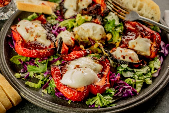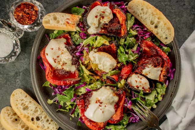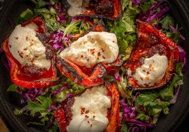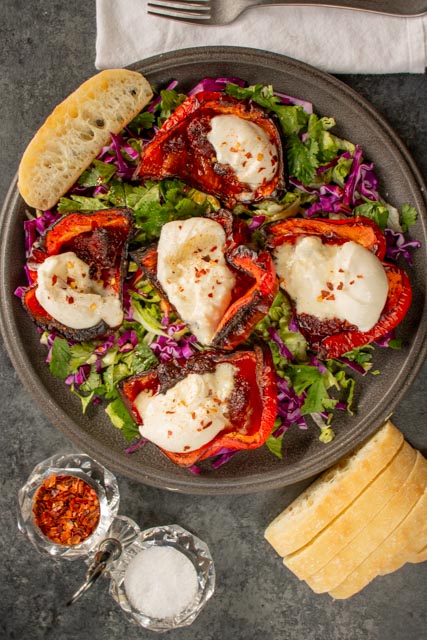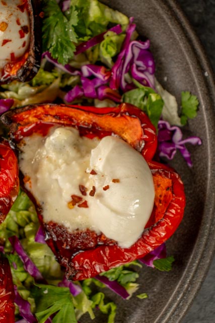 The colors are really beautiful! I’m glad I created a salad of sorts underneath the peppers.