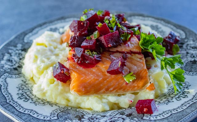 Poached Salmon with Beet Relish